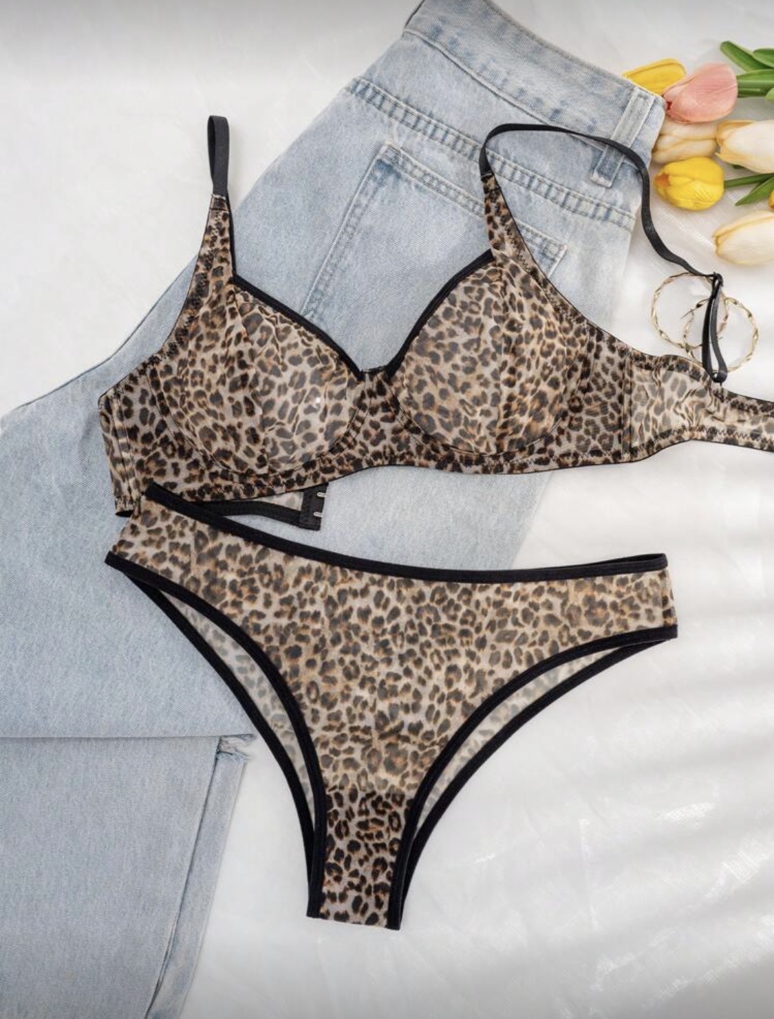 ست لباس زیر زنانه برند shein طرح پلنگی
