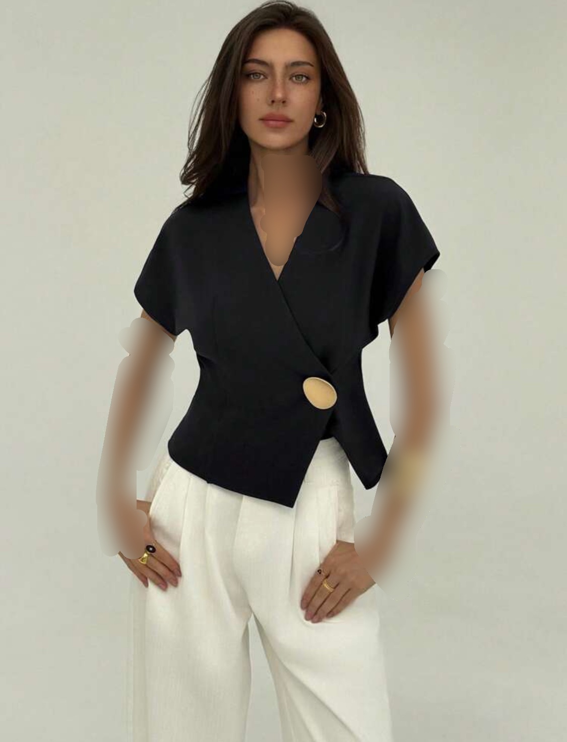 بلوز زنانه برند shein مدل دکمه مصری