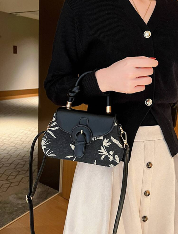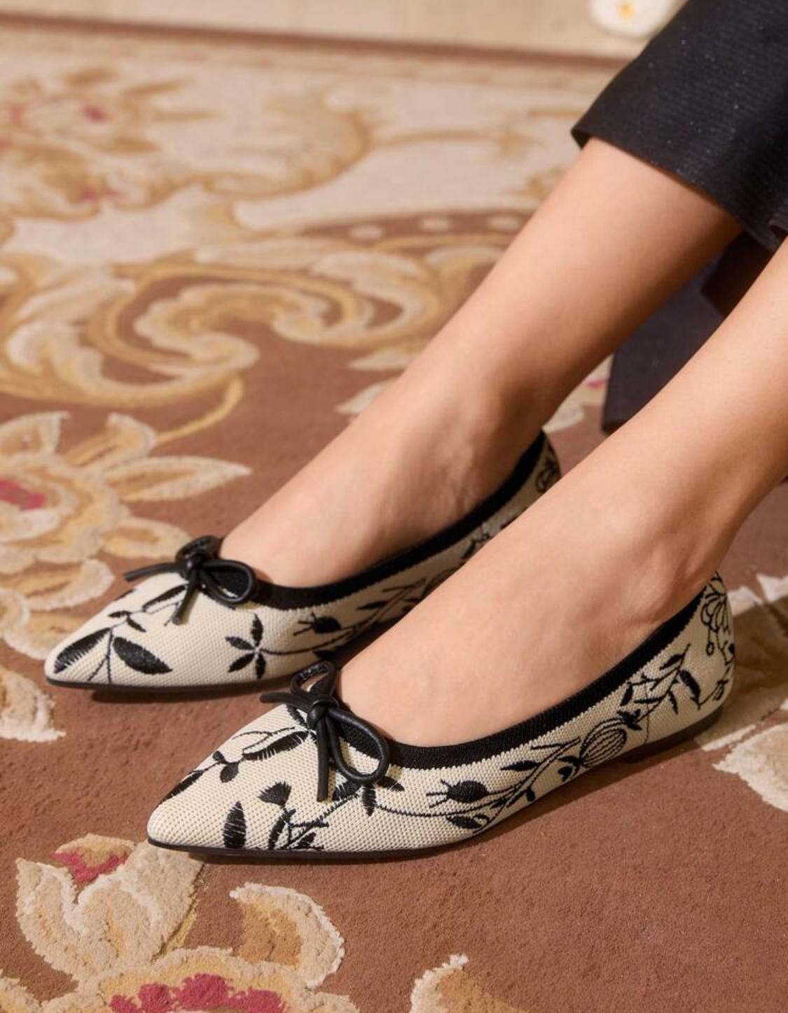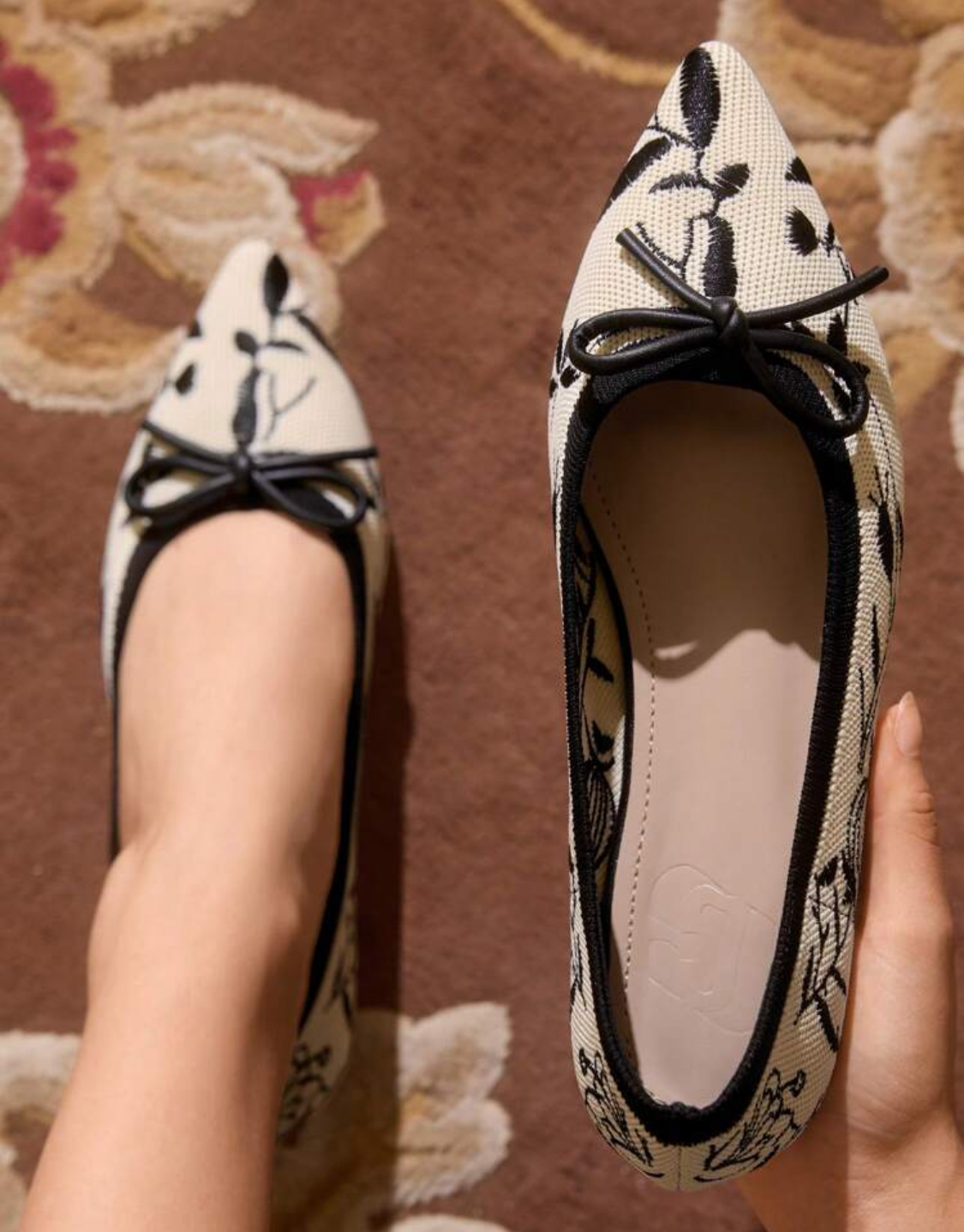 ست کیف و کفش زنانه. کفش فلت با جنس پارچه ای. جنس کیف چرم مصنوعی. کیف دستی دارای بند بلند