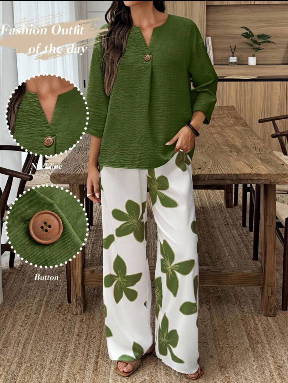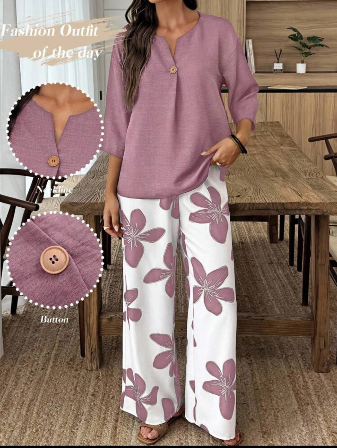 ست بلوز و شلوار زنانه برند shein مدل تک دکمه