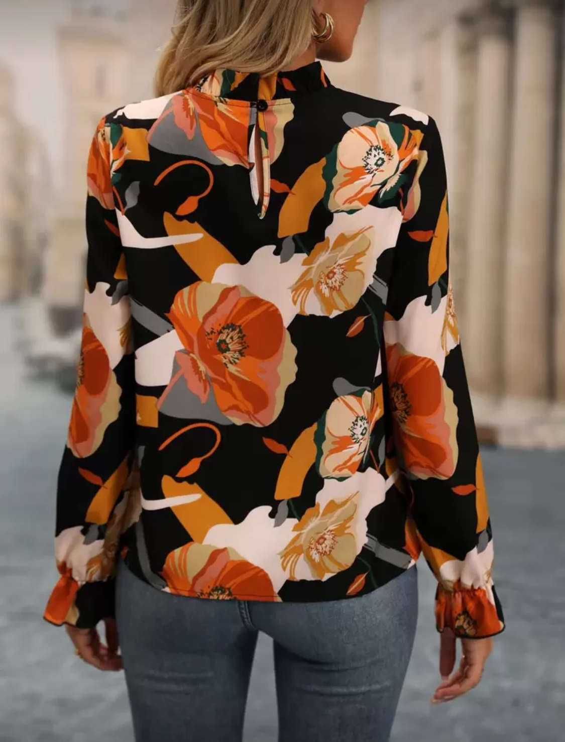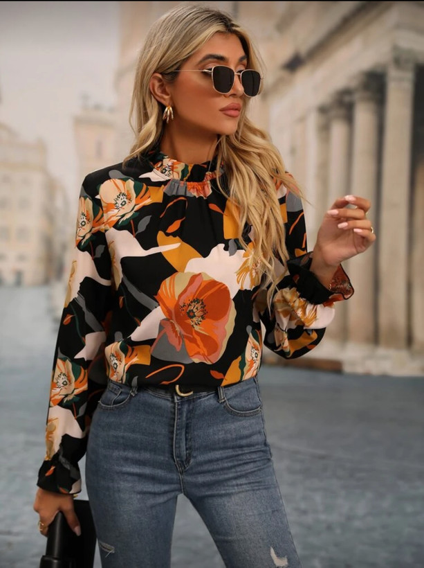 بلوز زنانه از برند shein جنس ساتن دور یقه و آستین چین کمی دارد. پشت یقه دکمه دارد.