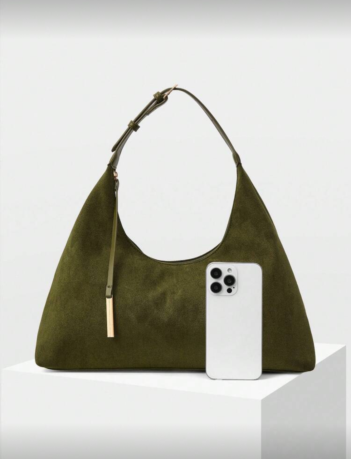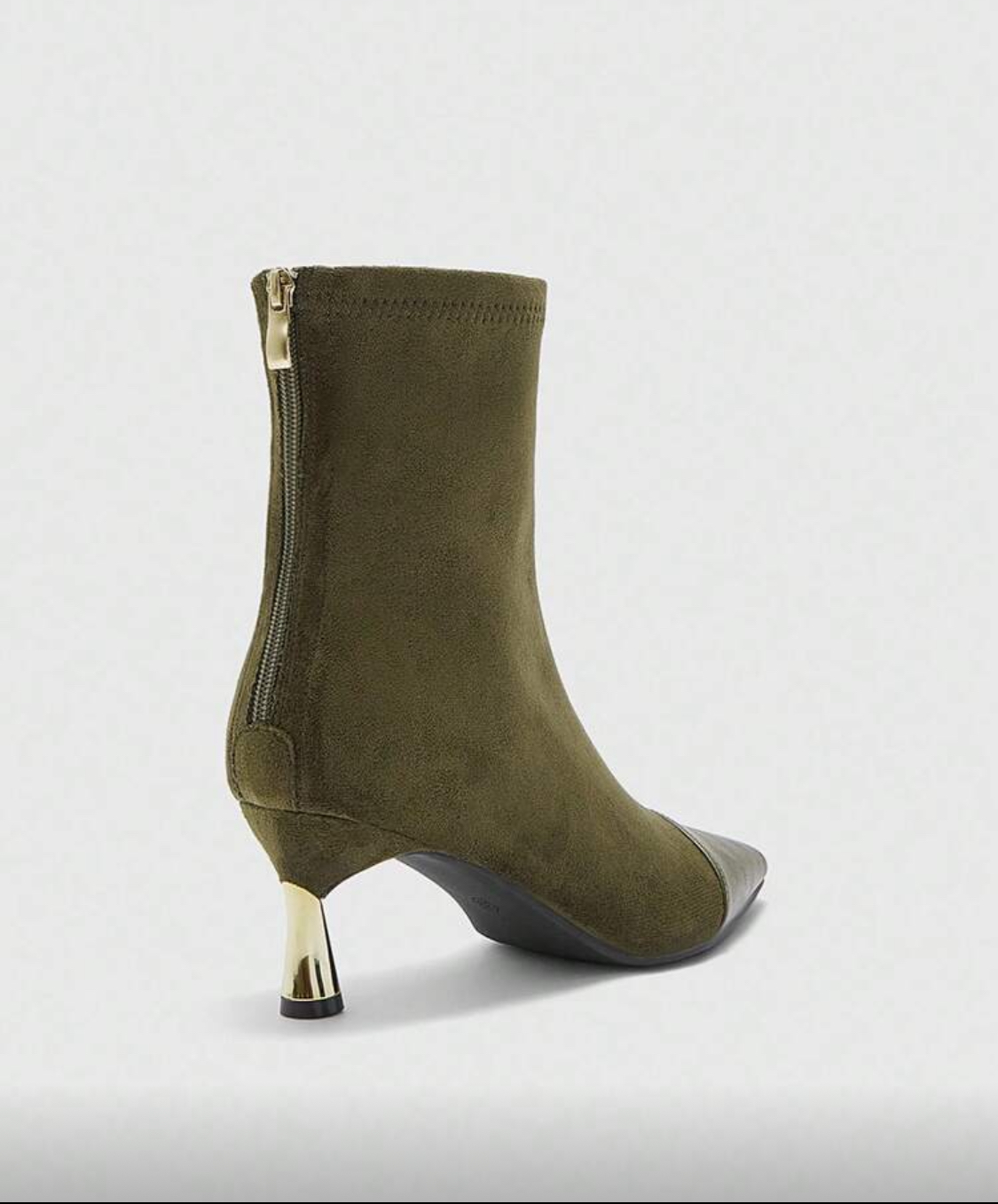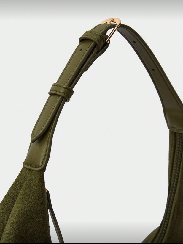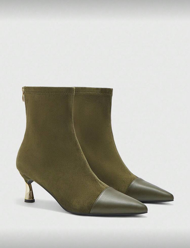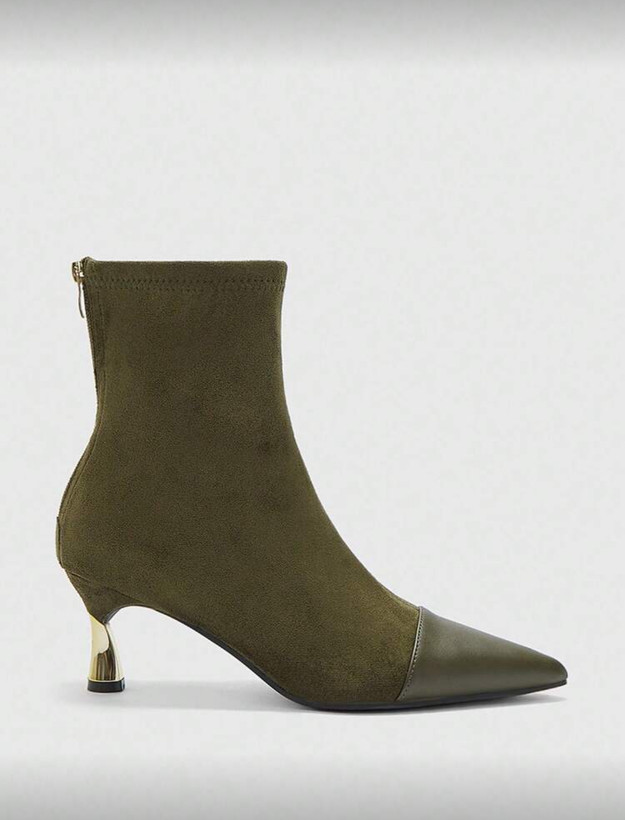ست کیف و کفش زنانه از برند shein . رنگ زیتونی که یکی از ترندهای امساله. بوت جیر و چرم با پاشنه طلایی ۶ سانت. کیف جیر مدل دوشی