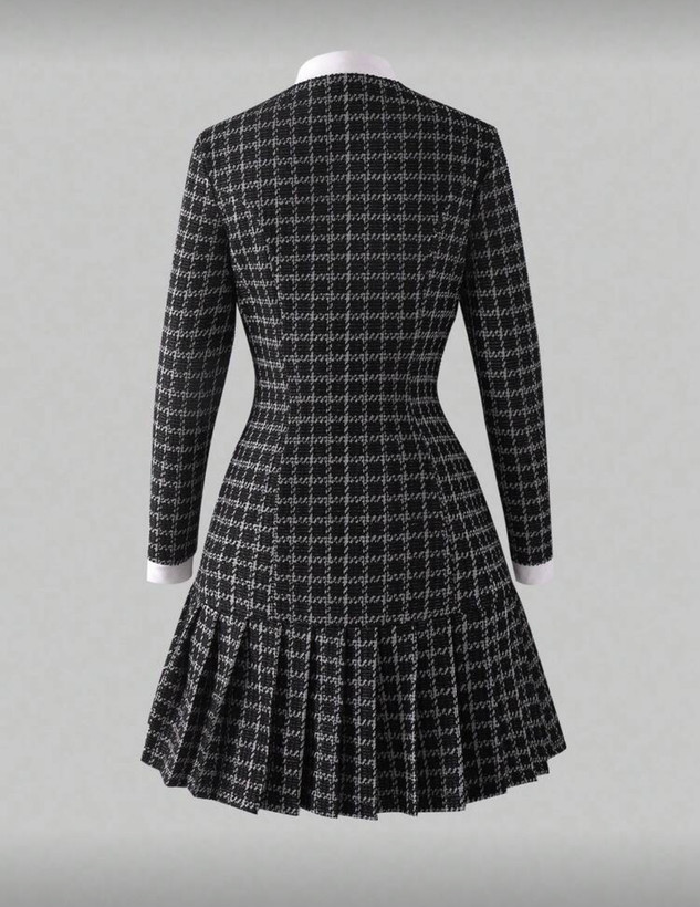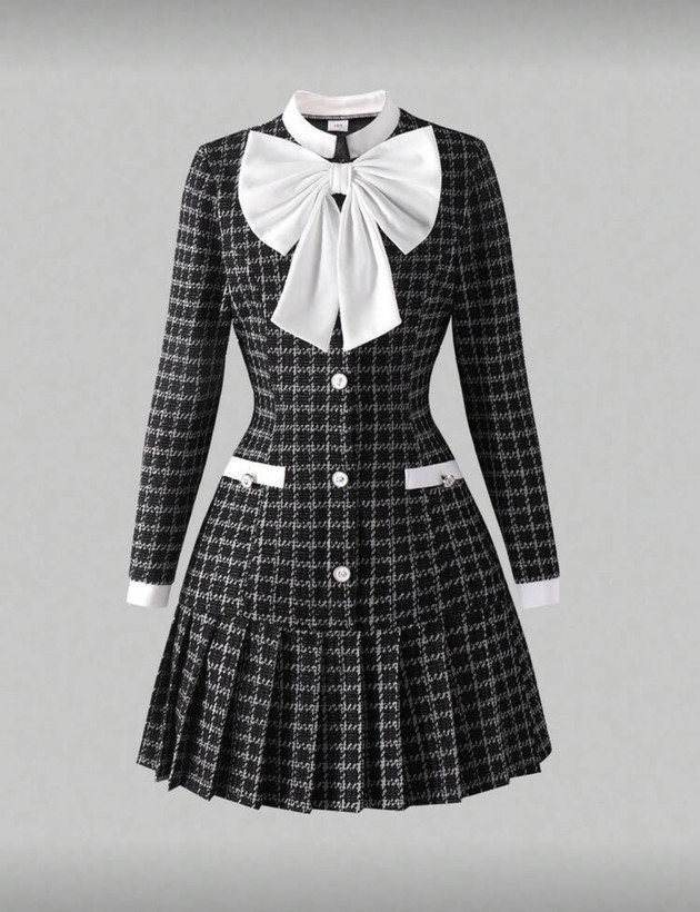 پیراهن دخترانه از برند shein . آستین بلند. استایل: اسلیم فیت. دارای کشسانی کم. پاپیون جلوی یقه جدا میشود