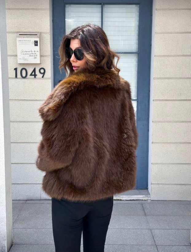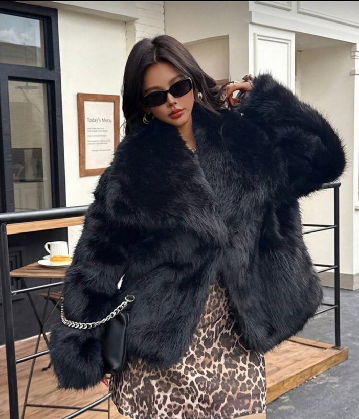 کت خز زنانه از برند shein . مناسب زمستان دمای زیر ۱۰ درجه . استایل: تقریبا اورسایز . کشسانی ندارد.