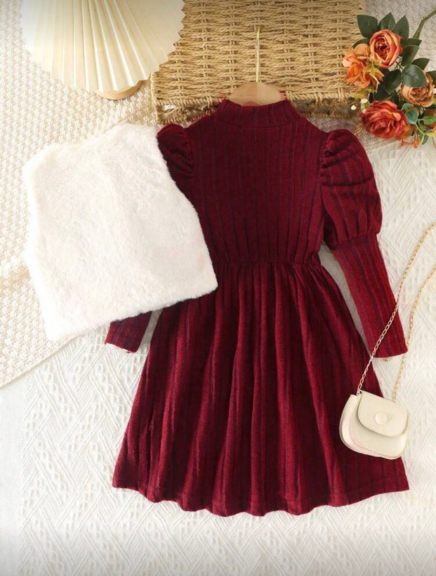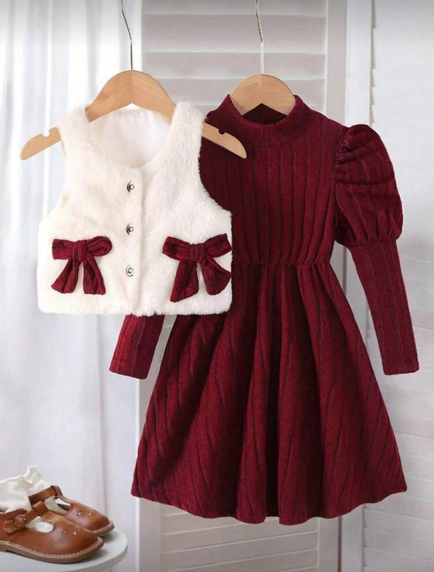 ست پیراهن و وست دخترانه برند shein مدل پاپیون دار
