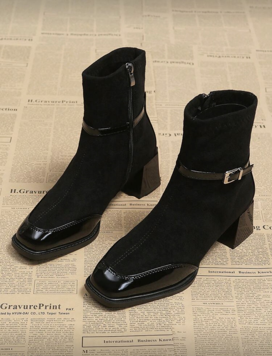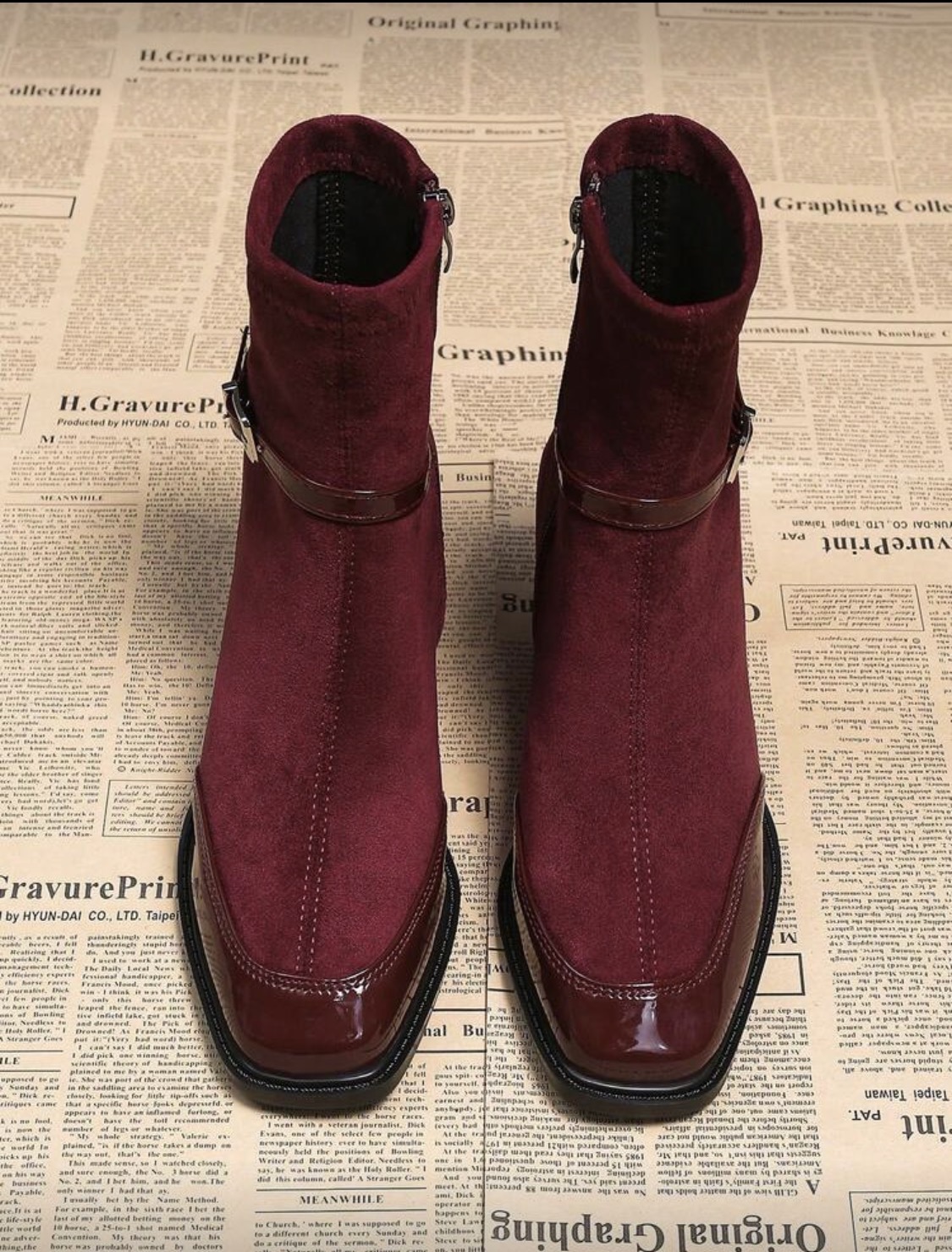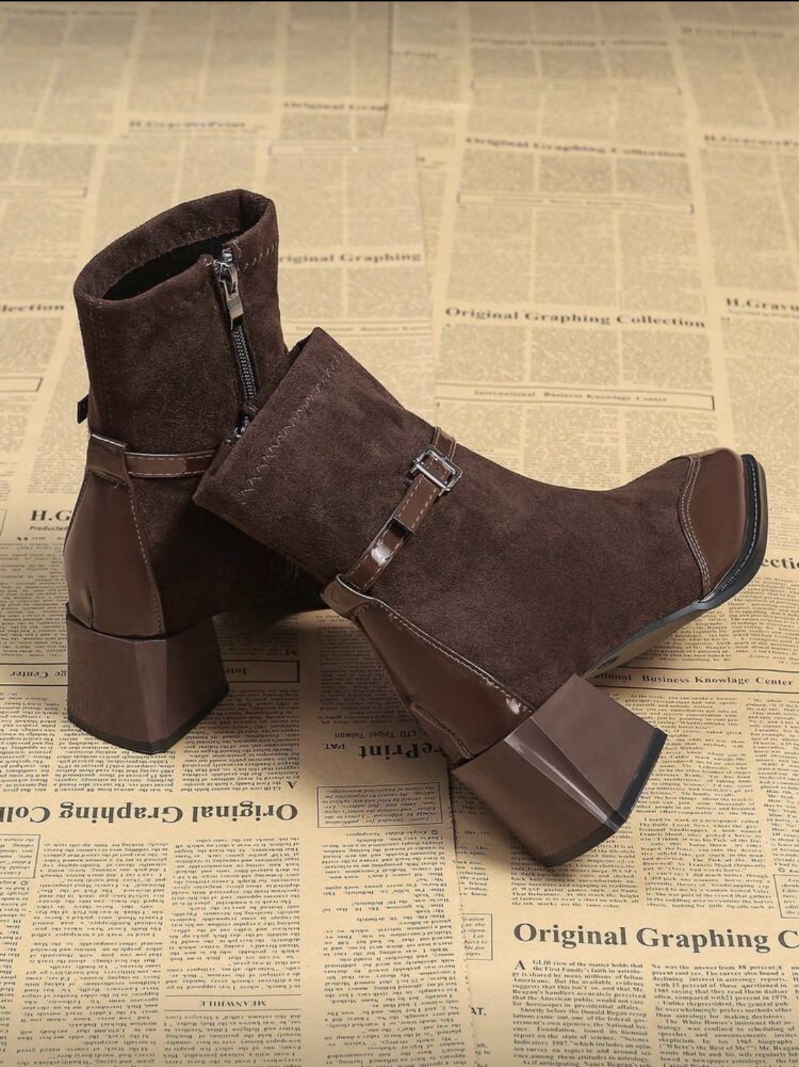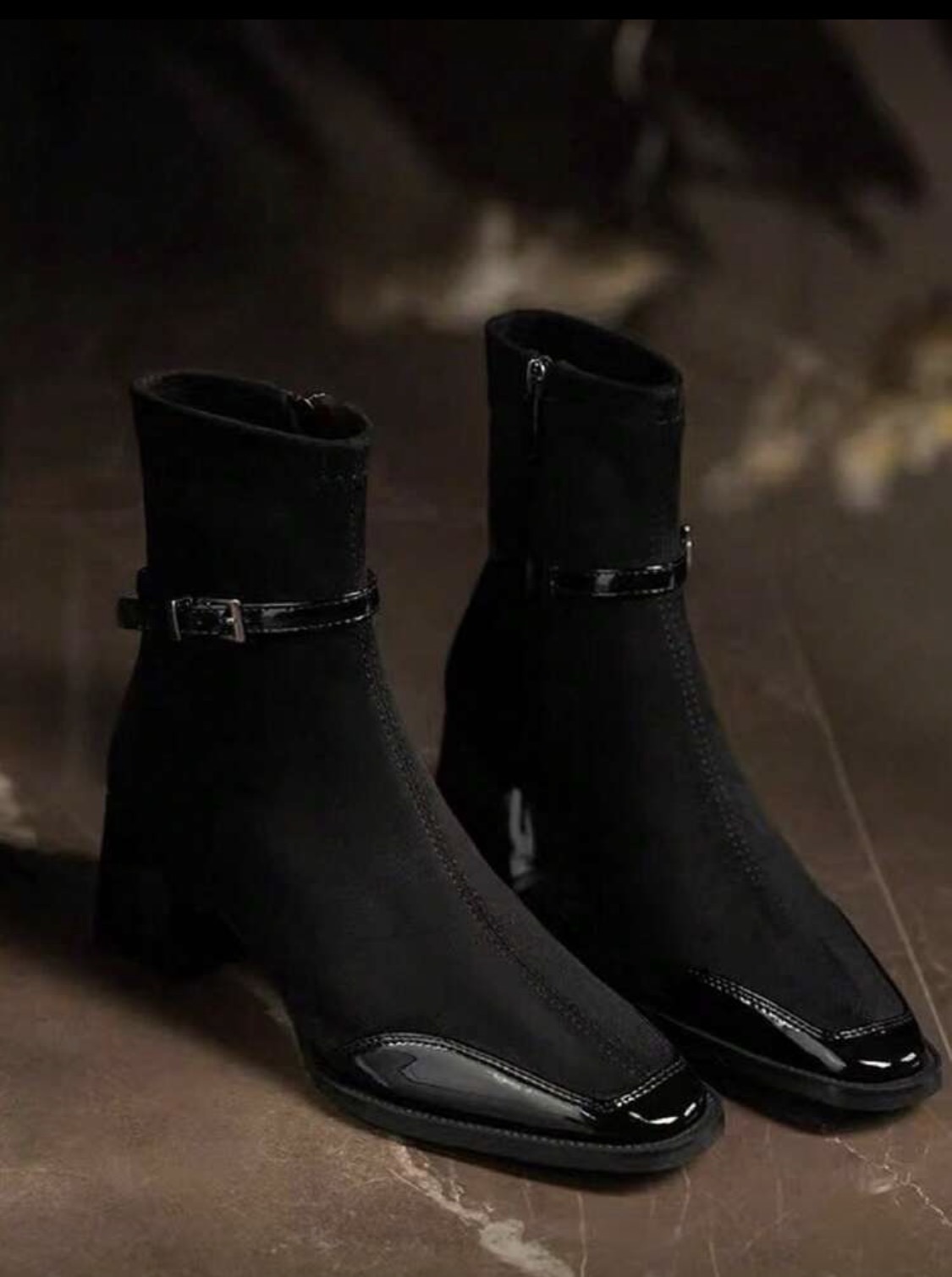 نیمبوت زنانه از برند shein. جنس بوت جیر میباشد که جلو و پشت آن چرم کار شده است. پاشنه ۷ سانت.
