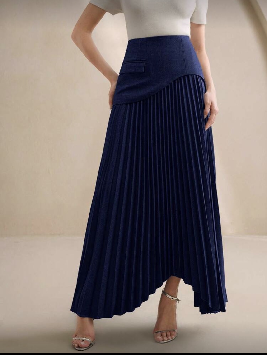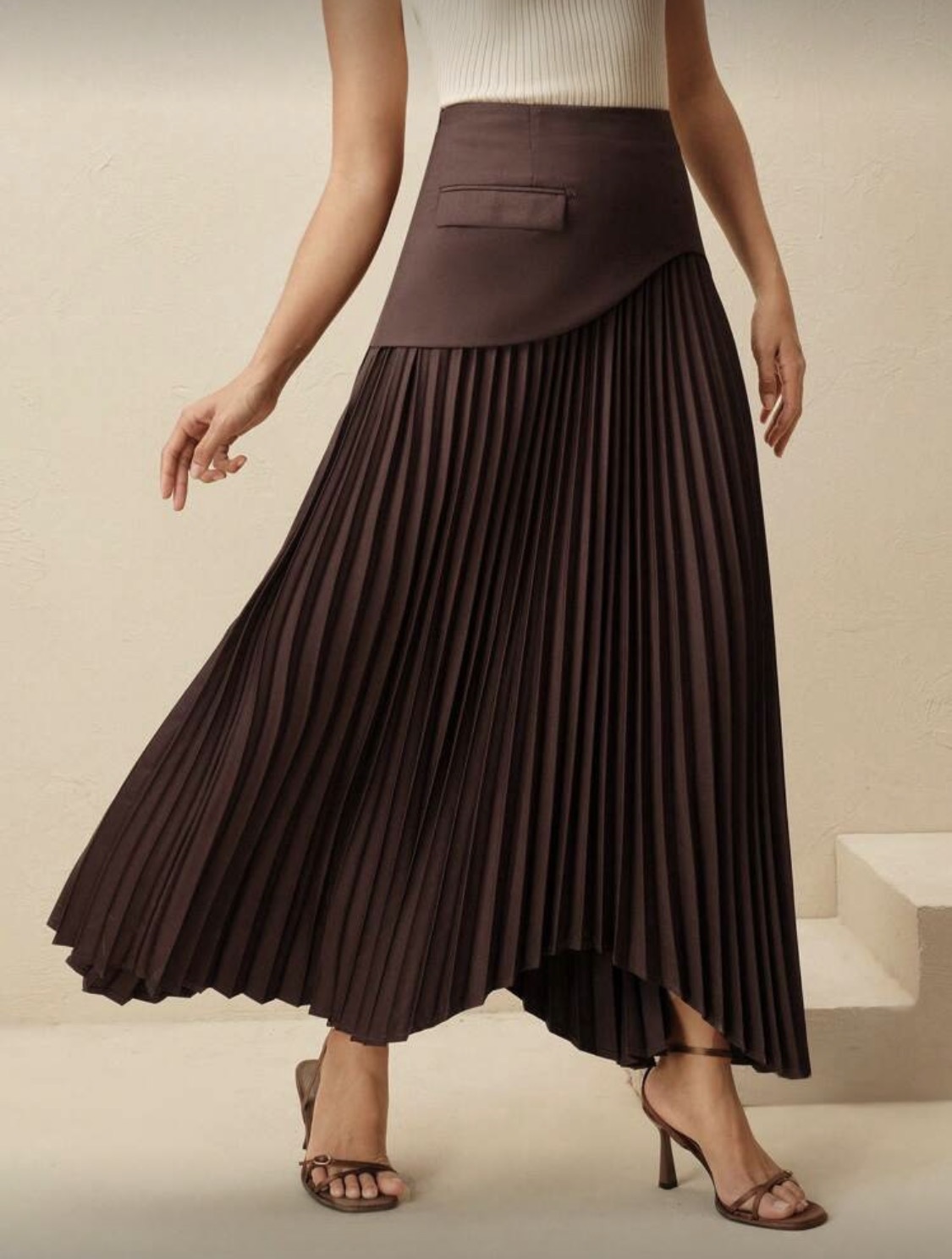دامن پلیسه زنانه از برند shein. یه دامن مجلسی و شیک برای استایل خاص مهمونی هاتون. استایل: regular fit دارای کشسانی کم.