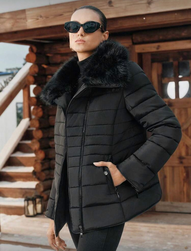 کاپشن زنانه برند shein مدل یقه خزدار