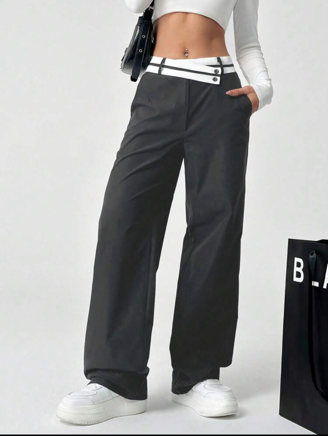 شلوار پارچه ای زنانه برند shein مدل کمر کج