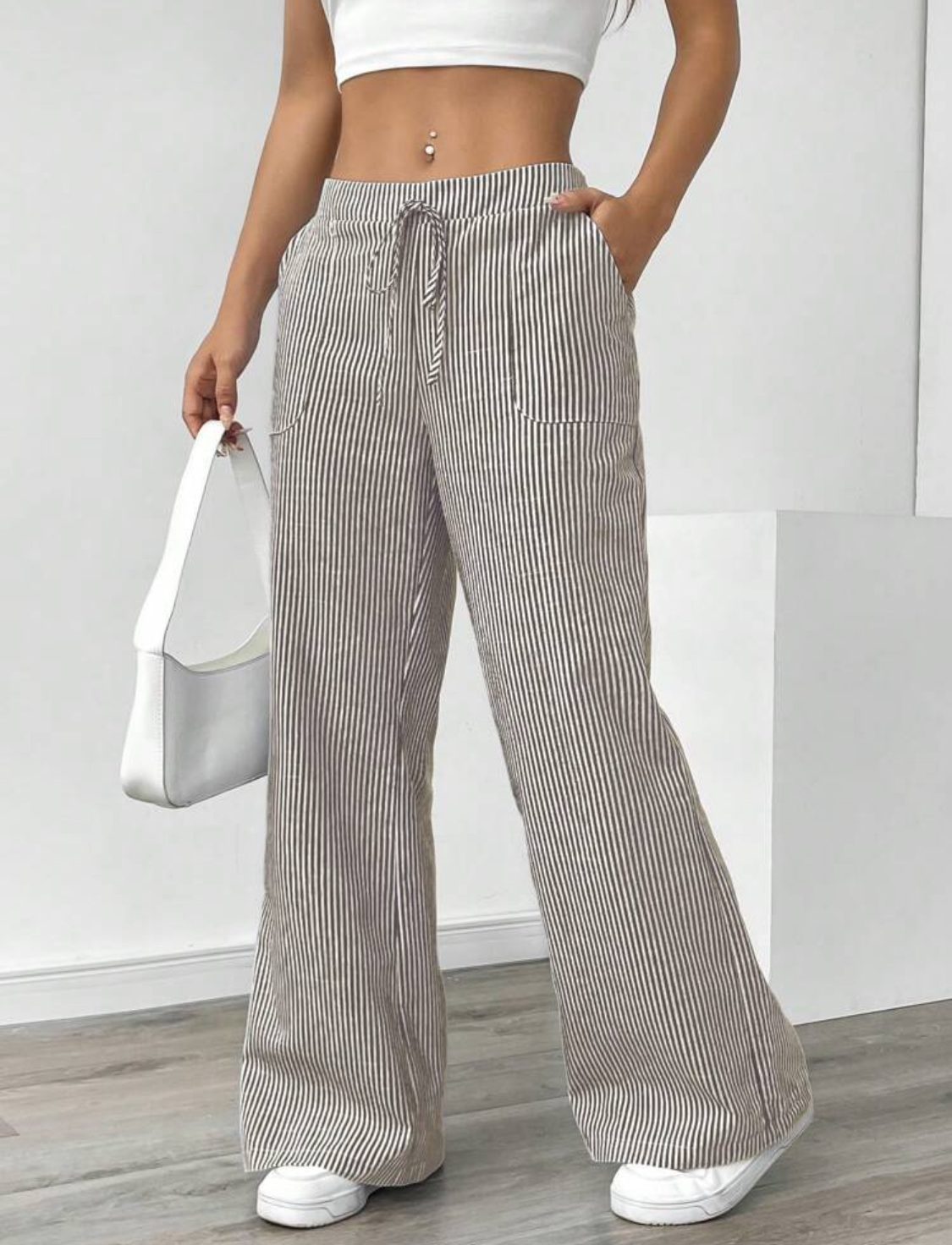 شلوار پارچه ای زنانه برند shein طرح راه راه