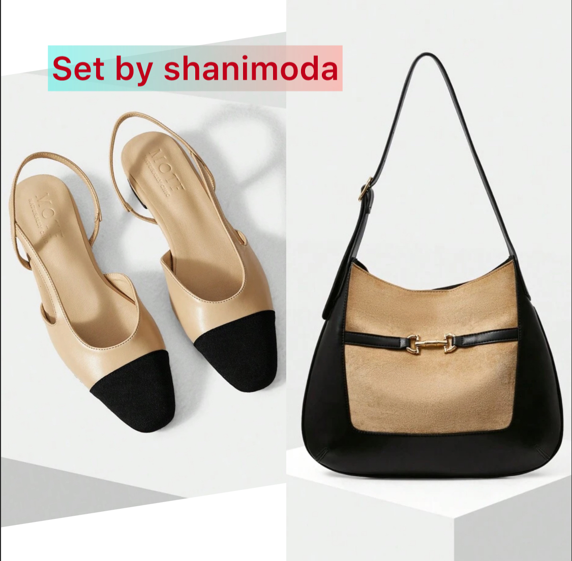 ست کیف و کفش زنانه برند shein مدل فلت دو رنگ
