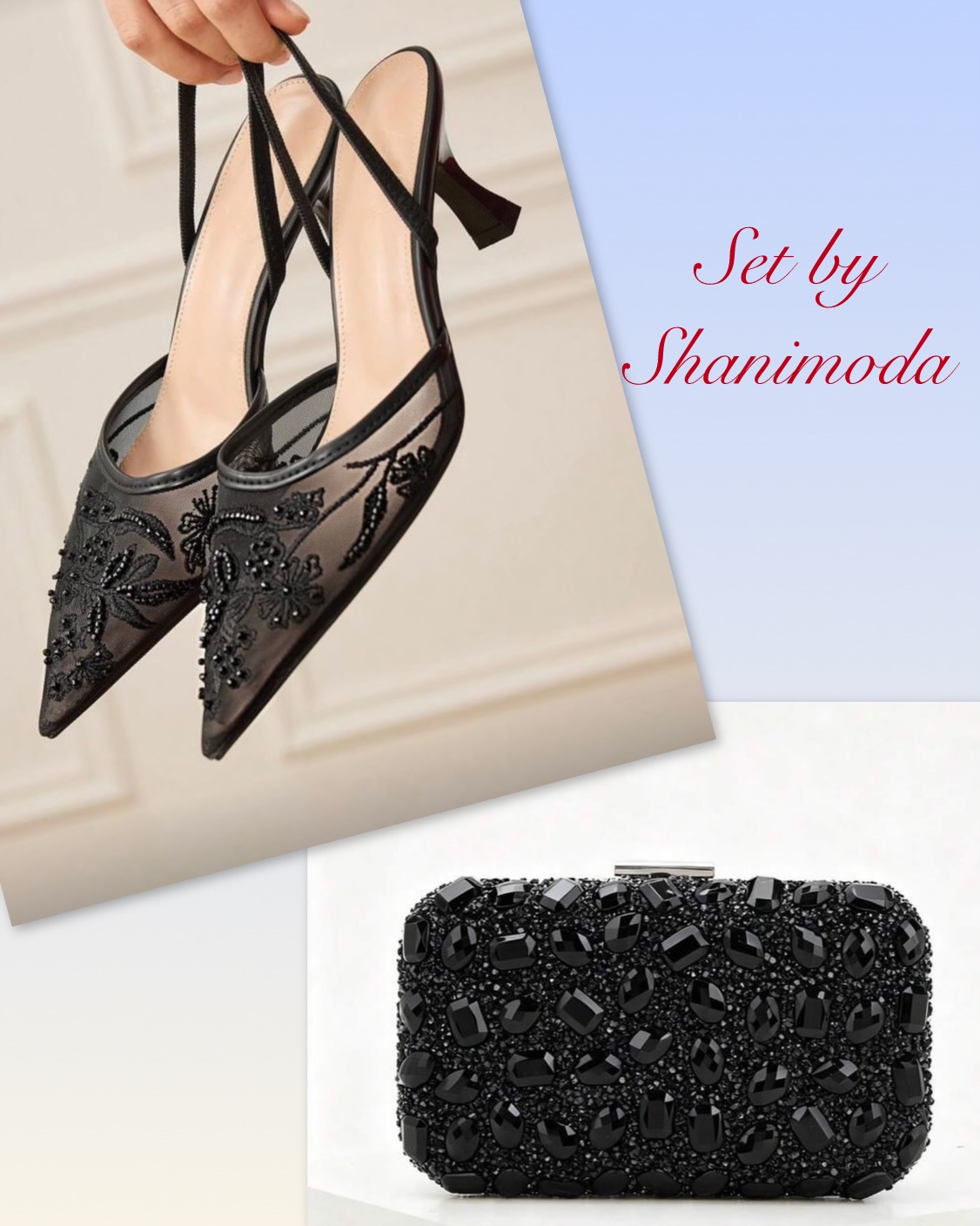 ست کیف و کفش زنانه برند shein مدل پاشنه دار پشت باز